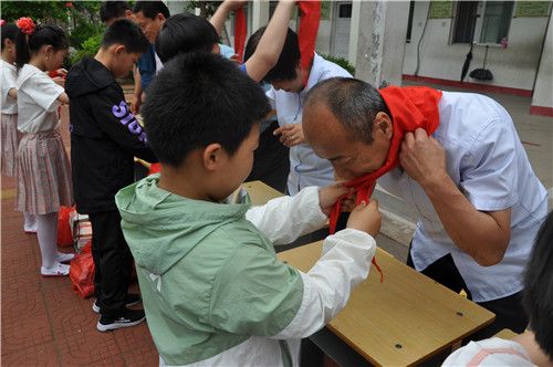 活動(dòng)開(kāi)始時(shí),學(xué)校少先隊(duì)員們?yōu)橹飨_(tái)上的師長(zhǎng)佩戴了紅領(lǐng)巾表達(dá)少先隊(duì)員傳承革命精神的決心。緊接著,在雄壯的國(guó)歌聲中,一面鮮艷的五星紅旗在校園主席臺(tái)前徐徐升起,在場(chǎng)的全體黨員及學(xué)生們對(duì)著行注目禮,并大聲唱起國(guó)歌。而后,由公司黨總支副書(shū)記周紅代表全體黨員對(duì)同學(xué)們致以節(jié)日的祝賀,祝同學(xué)們節(jié)日愉快,身體健康,并殷切希望全體少年兒童努力學(xué)習(xí),將來(lái)為建設(shè)祖國(guó)貢獻(xiàn)力量!